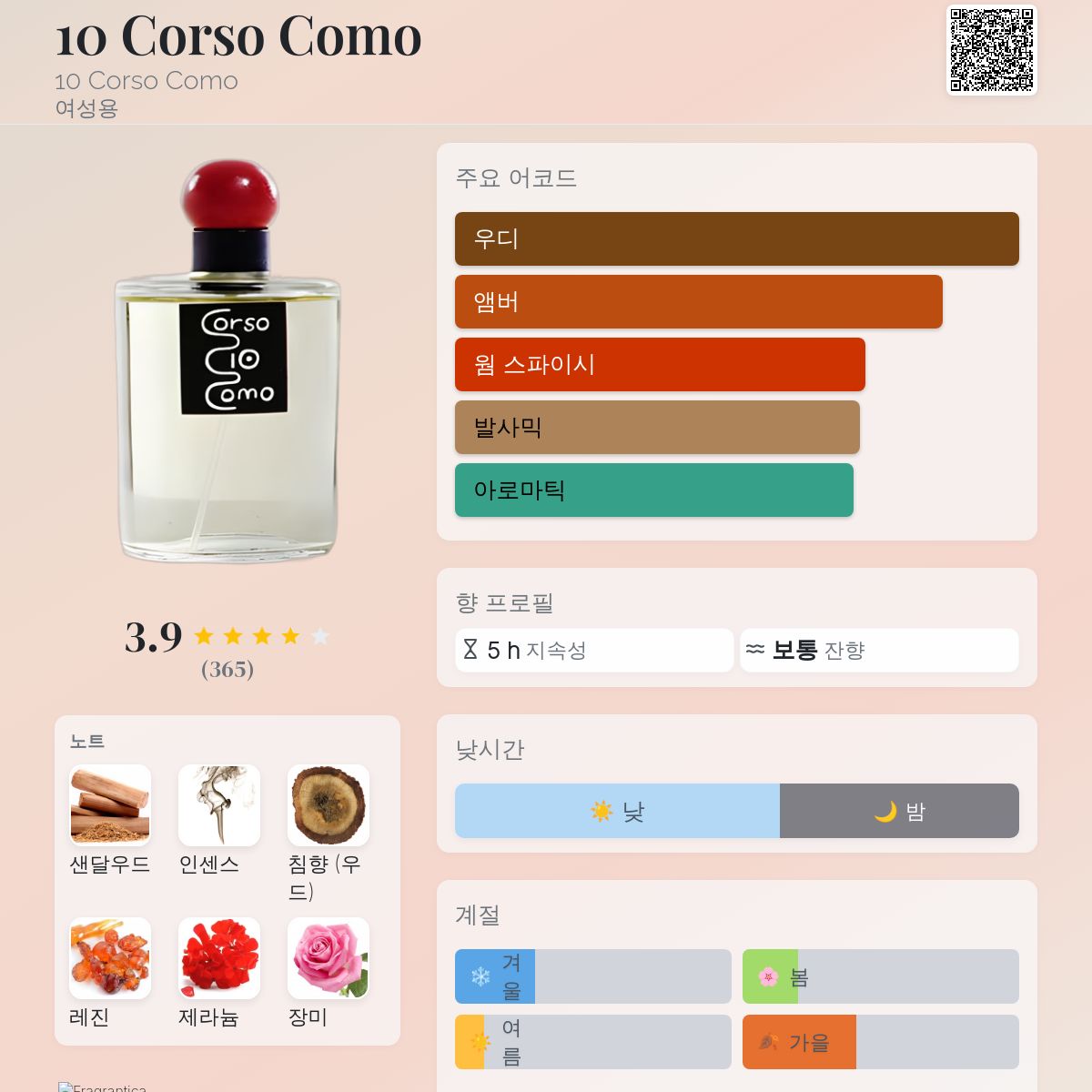 향수 평점 3.95 / 5 , 총 365 표