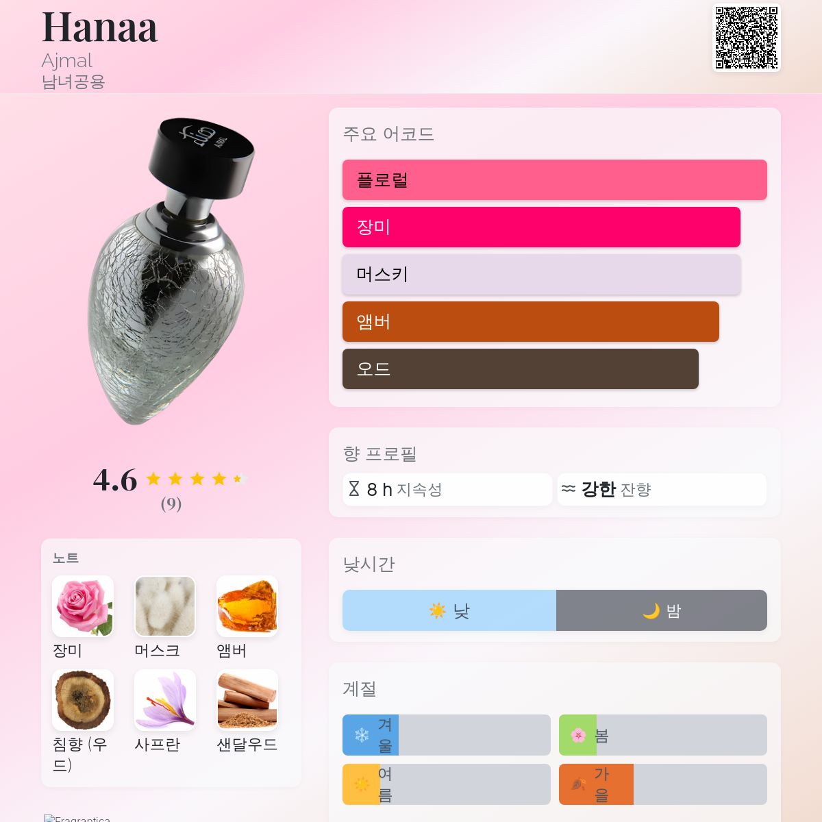 향수 평점 4.56 / 5 , 총 9 표