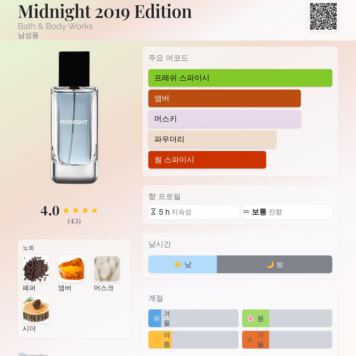 향수 평점 3.98 / 5 , 총 43 표