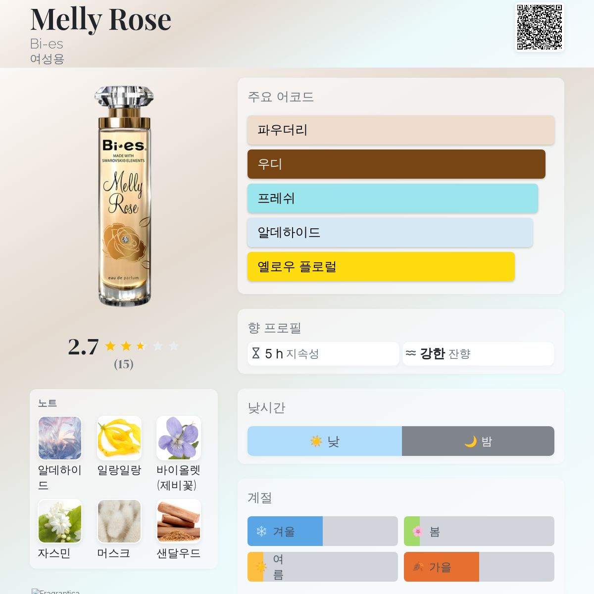 향수 평점 2.73 / 5 , 총 15 표