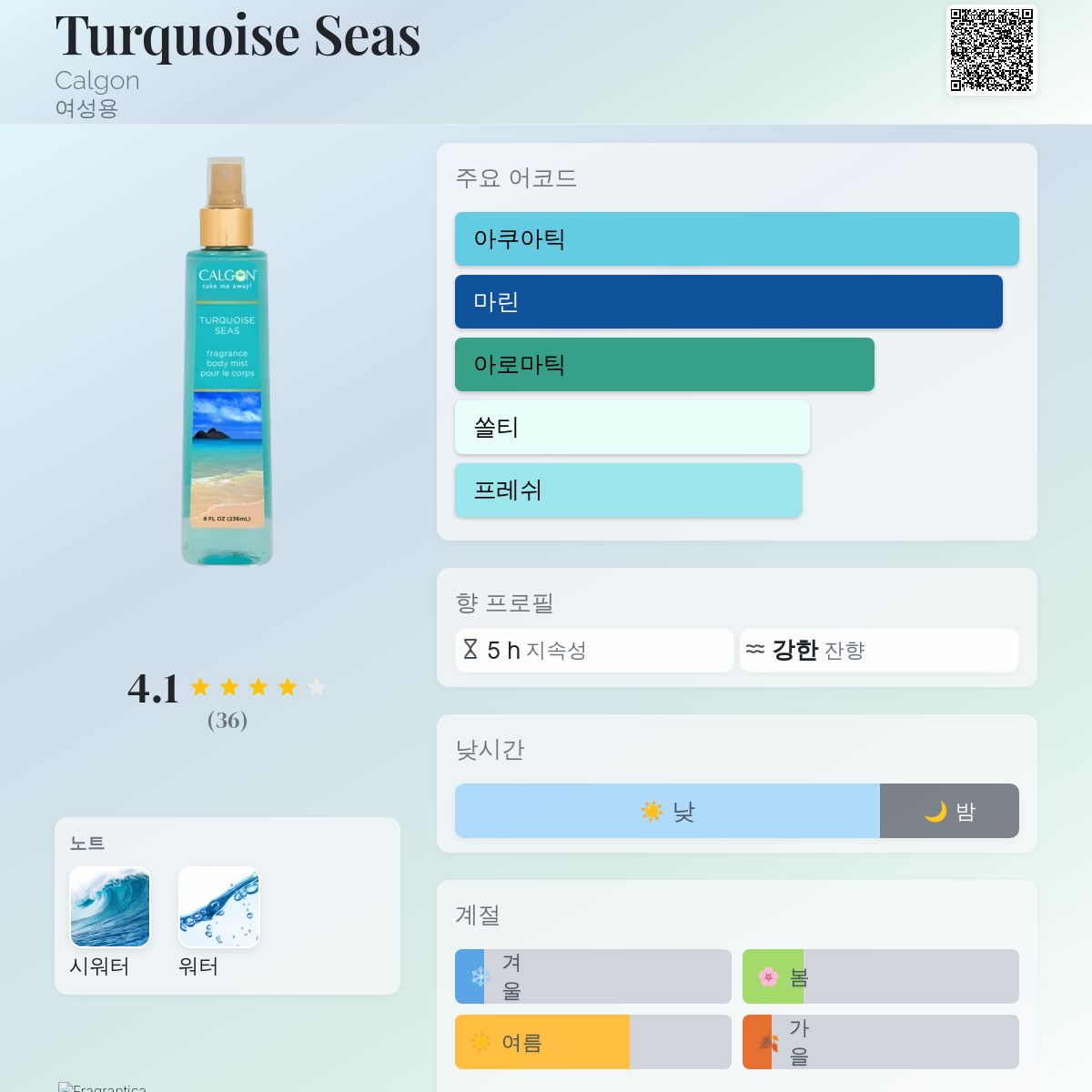 향수 평점 4.11 / 5 , 총 36 표