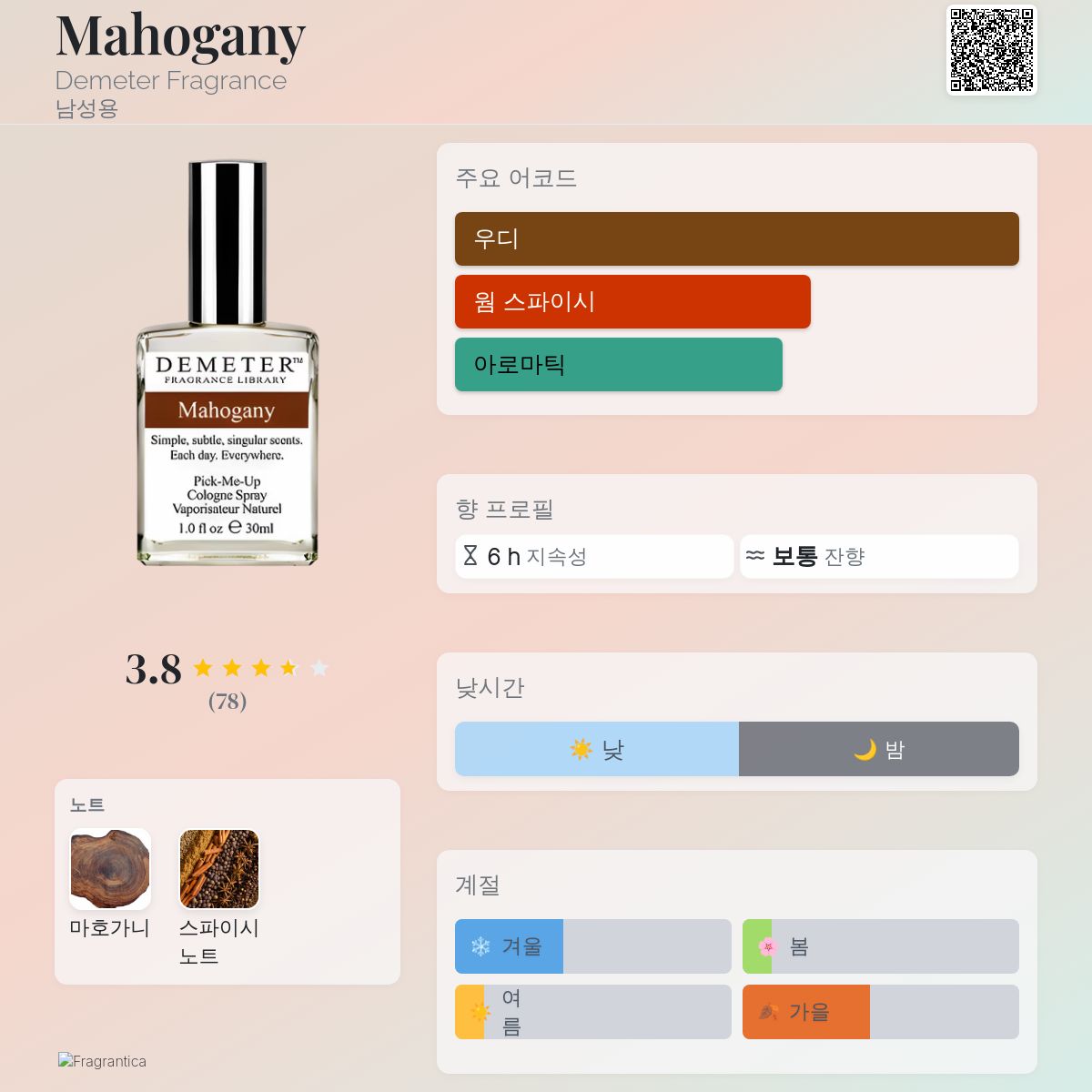 Demeter Fragrance의 Mahogany은(는) 남성용 우디 스파이시 향수입니다.