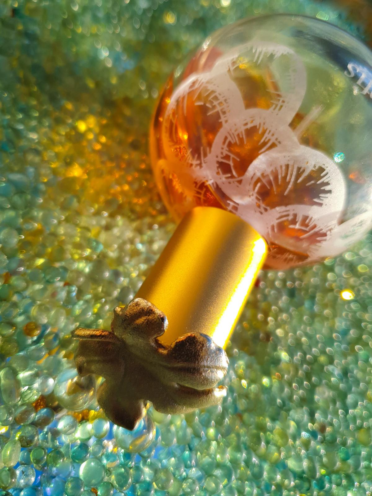 병 디자인은 개인적으로 별로 마음에 들지 않아요, 그냥 그런 황동 공 같은 거죠. 하지만 금빛 잎으로 장식된 마개는 제 마음을 훔쳐갔어요.