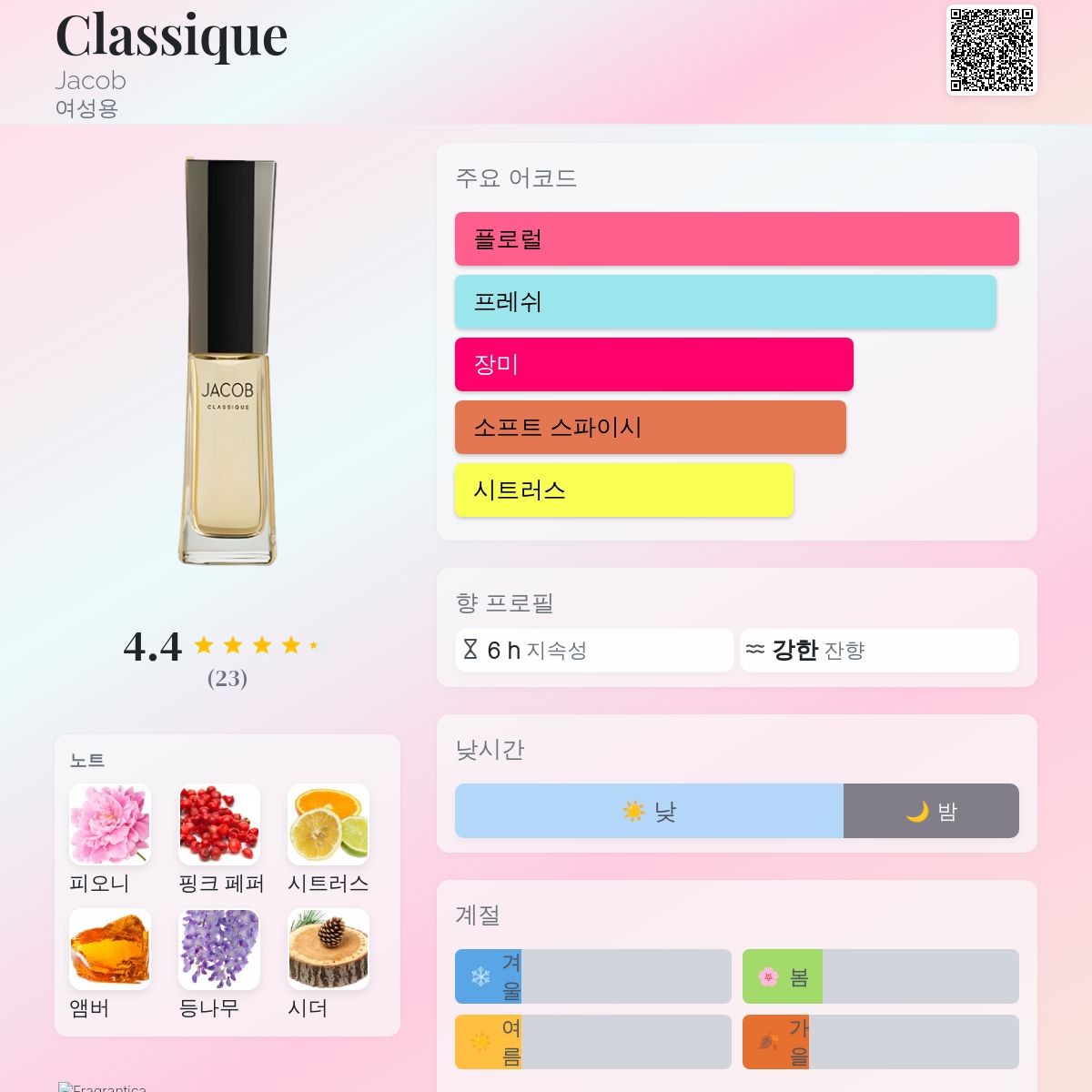 향수 평점 4.43 / 5 , 총 23 표