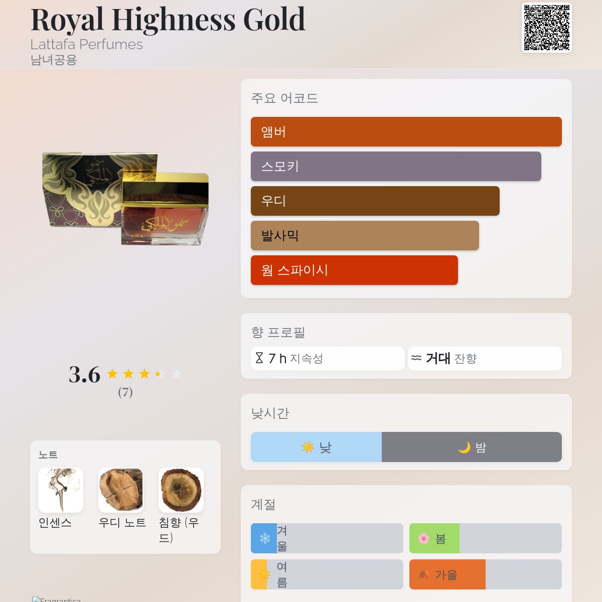 Lattafa Perfumes의 Royal Highness Gold은(는) 남녀공용 오리엔탈 향수입니다.