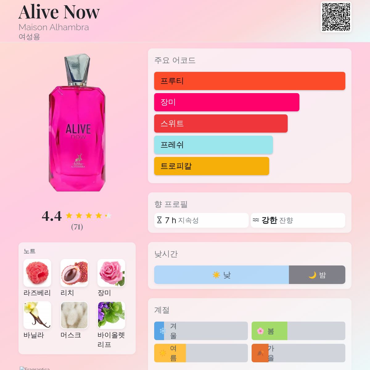 향수 평점 4.39 / 5 , 총 71 표