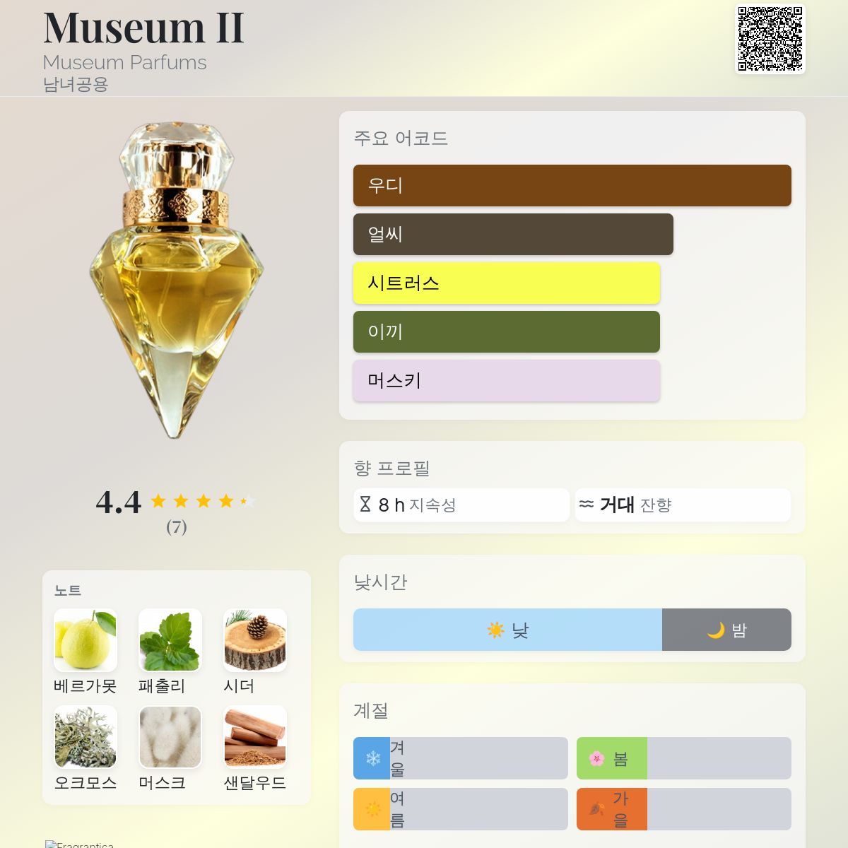 향수 평점 4.43 / 5 , 총 7 표