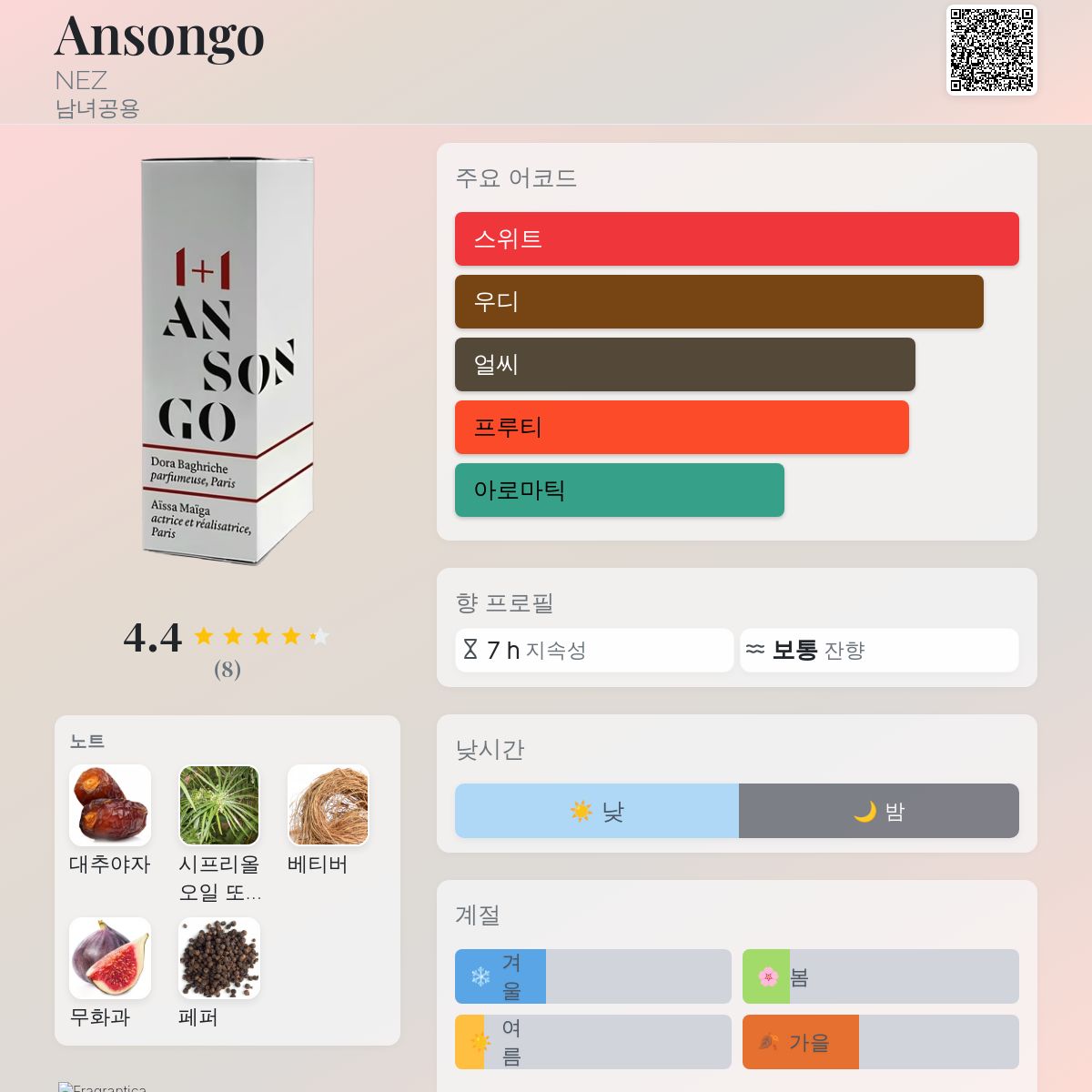 향수 평점 4.38 / 5 , 총 8 표