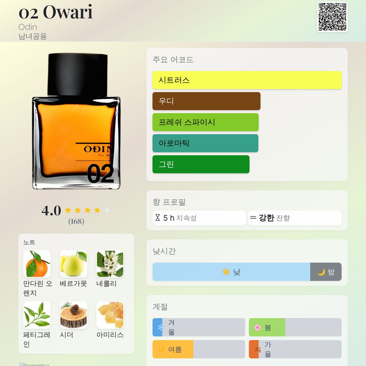 향수 평점 3.98 / 5 , 총 168 표