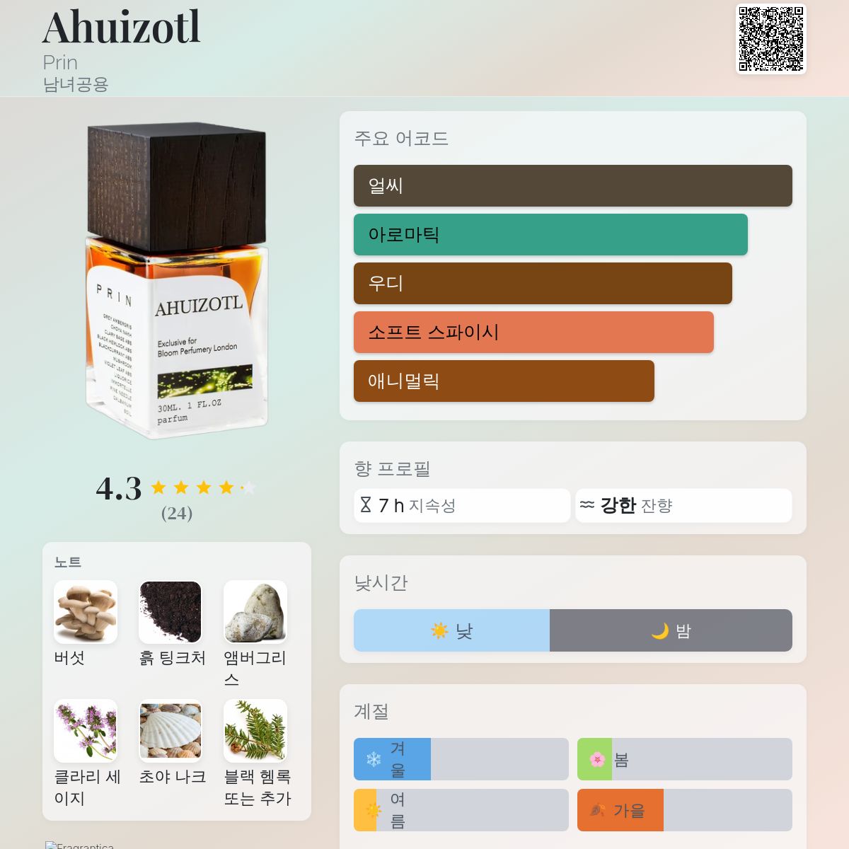 향수 평점 4.25 / 5 , 총 24 표