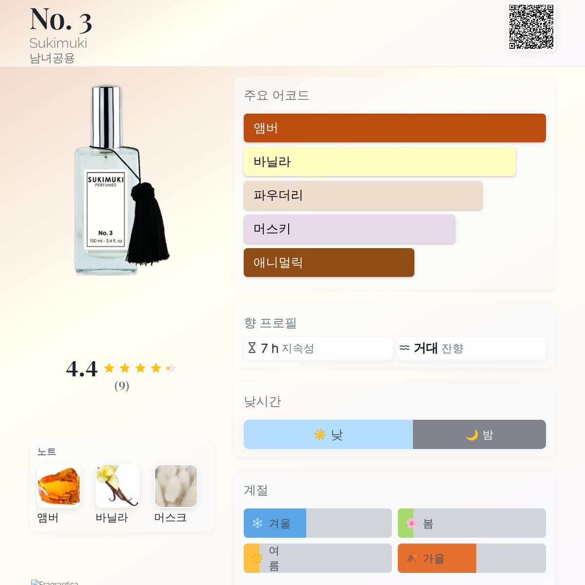 향수 평점 4.44 / 5 , 총 9 표