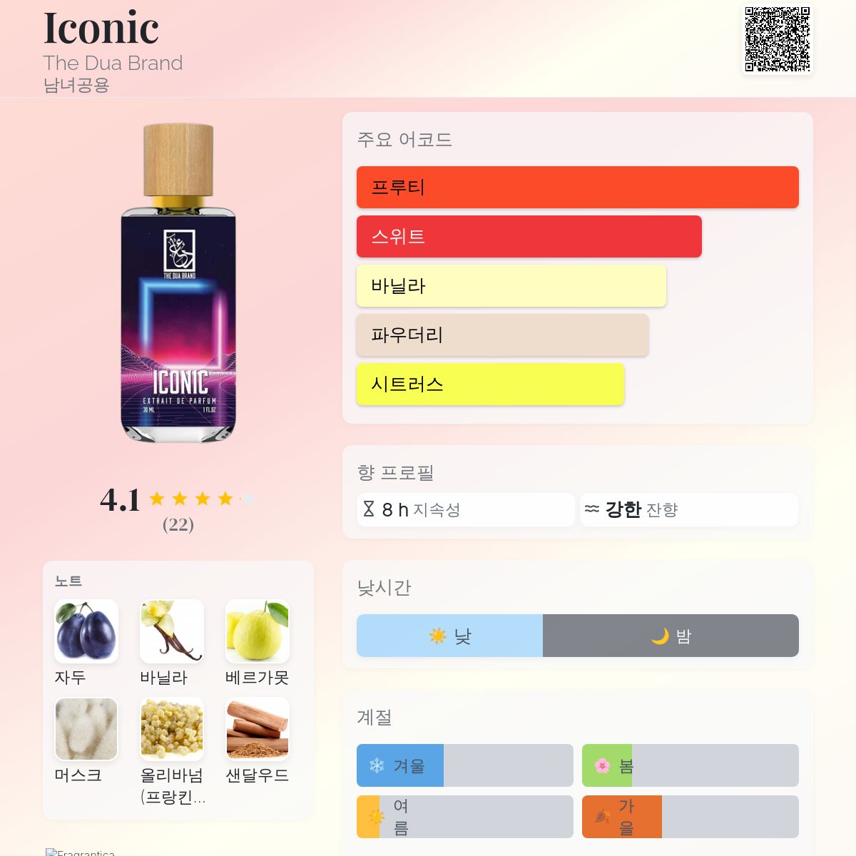 향수 평점 4.14 / 5 , 총 22 표