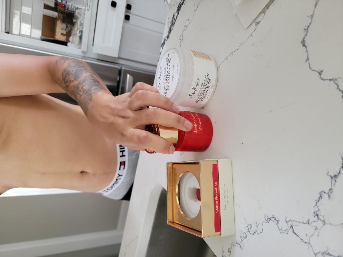 이제 스피리토 피오렌티노로 넘어가자면, 이건 확실히 착용자 스스로도 향을 느낄 수 있게 해줍니다. 전반적으로 약 90% 정도 유사하다고 말할 수 있겠네요. 더 깊고 강렬합니다. 이 정도면 충분하겠죠.